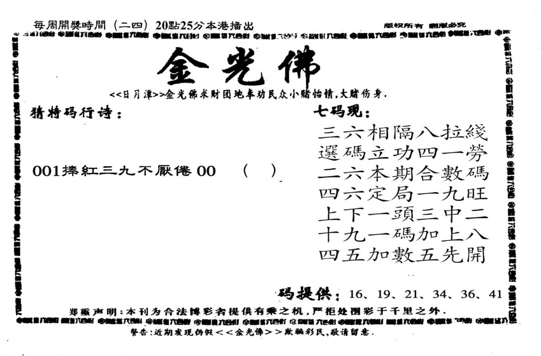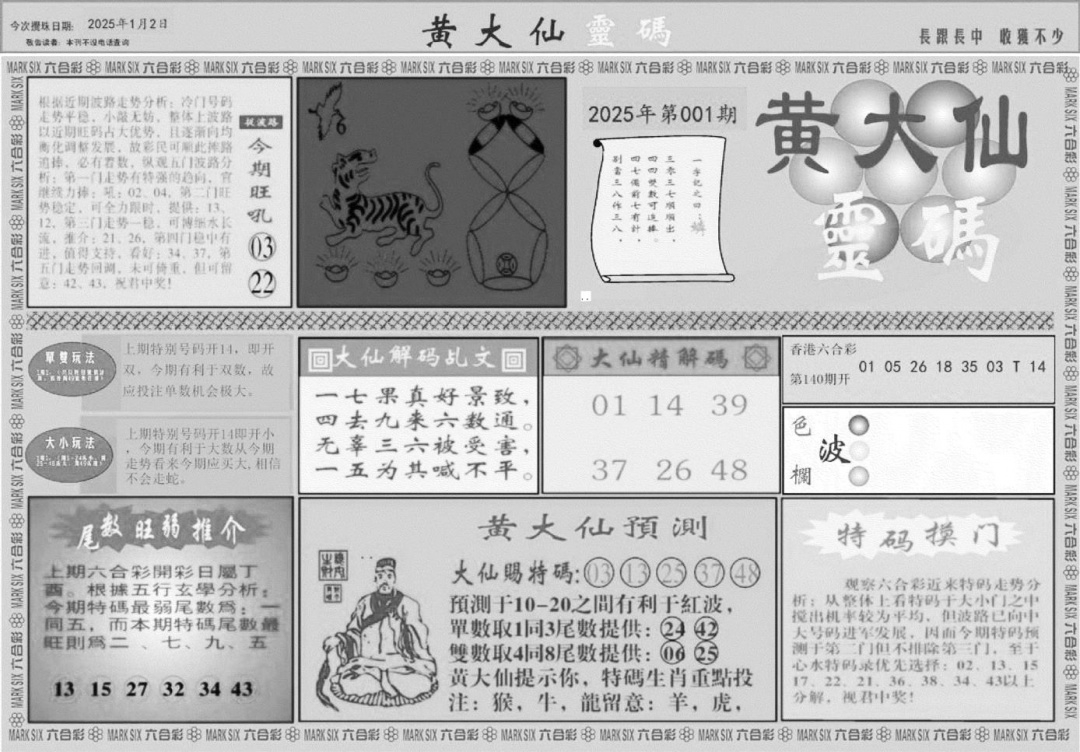 黄大仙灵码B