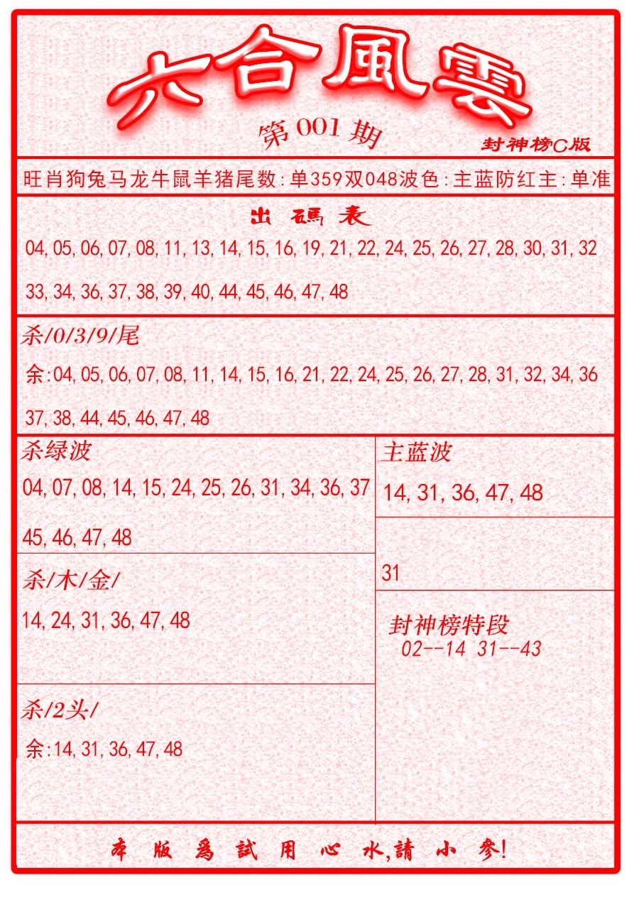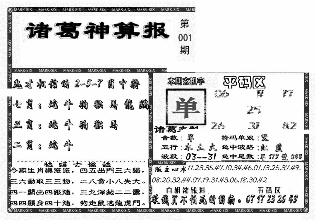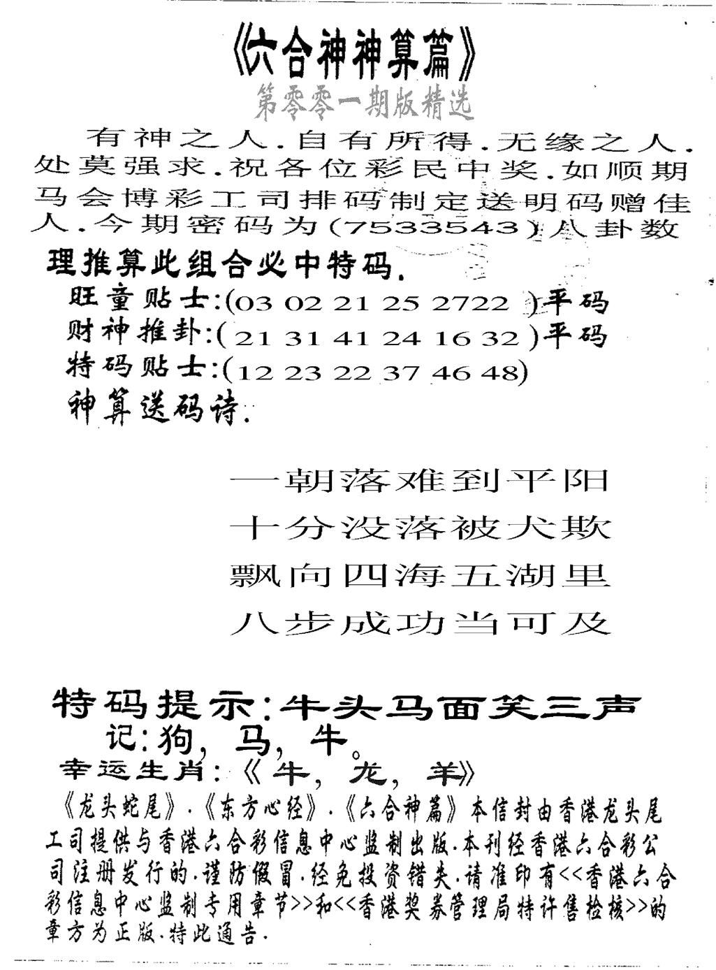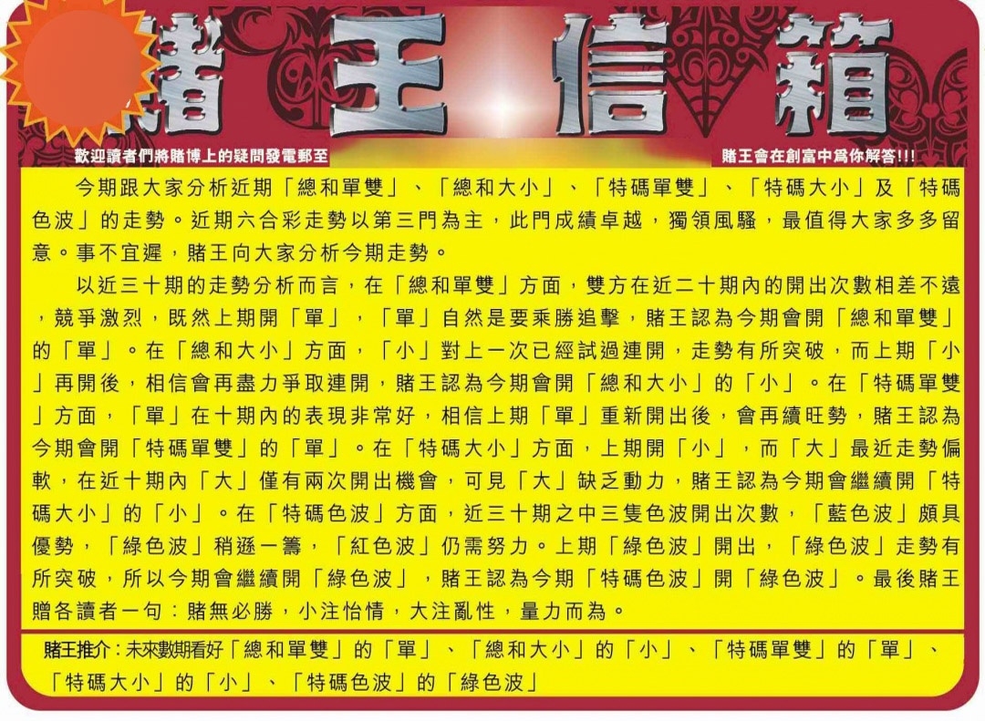 马经王牌料(荐)