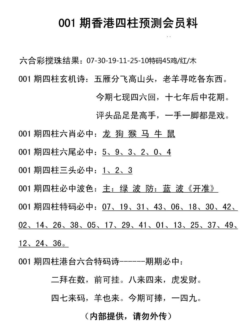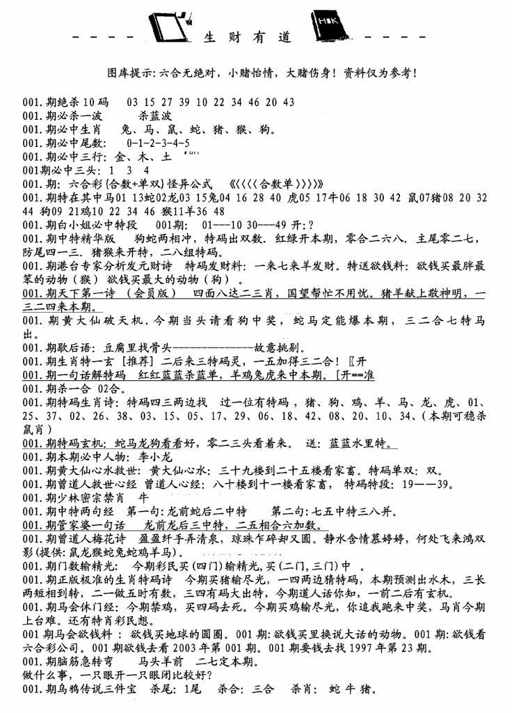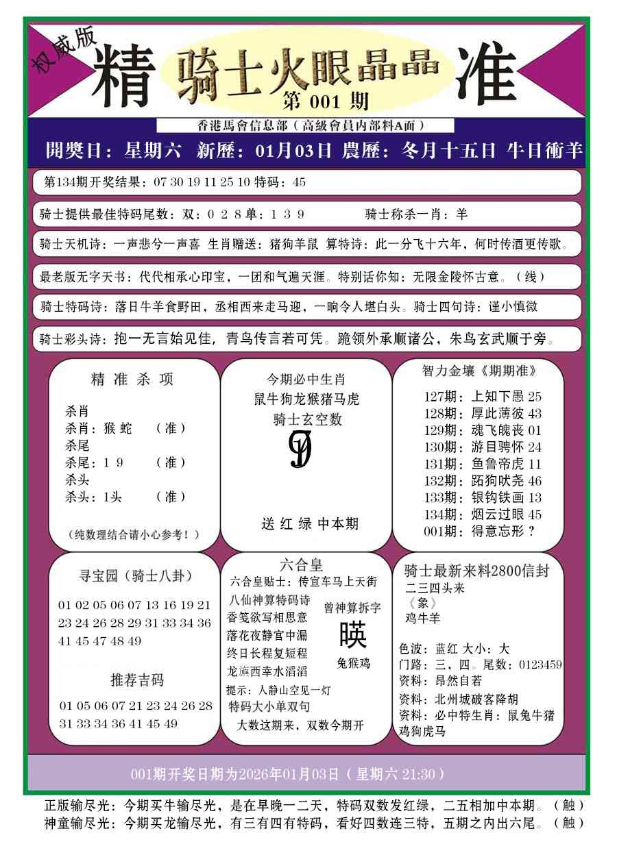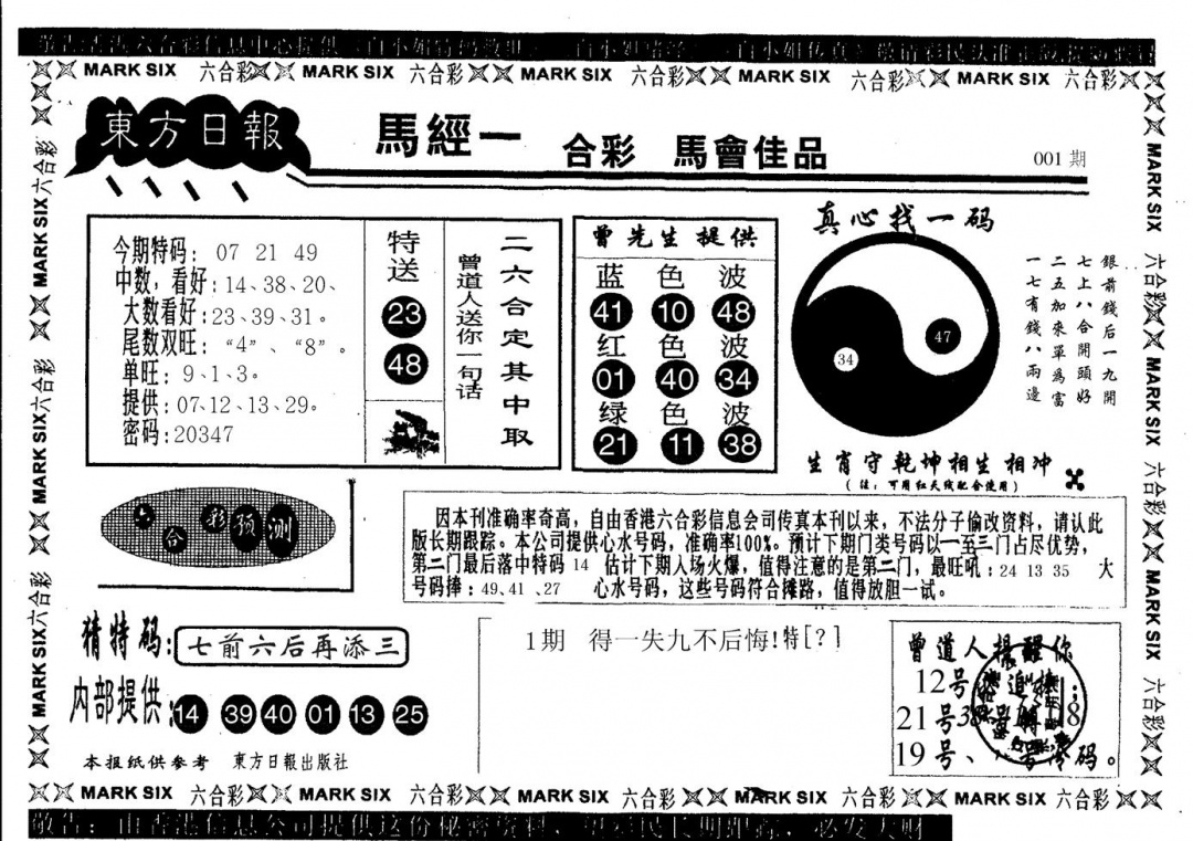 马经王牌料(荐)