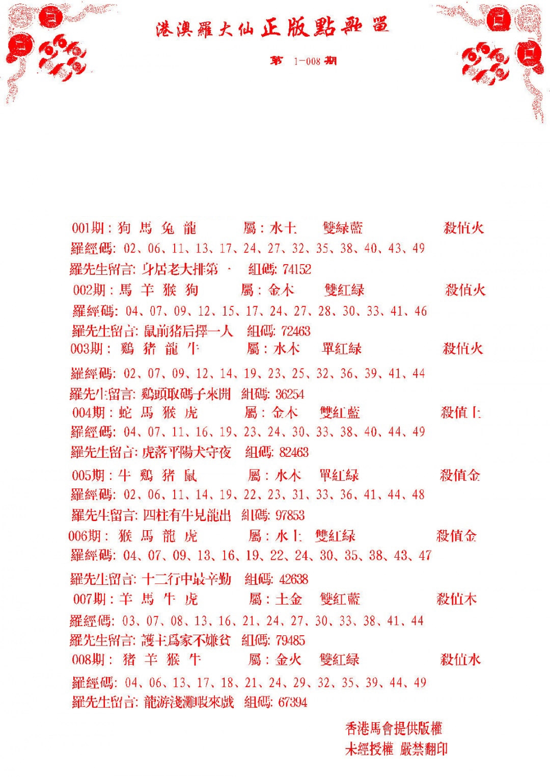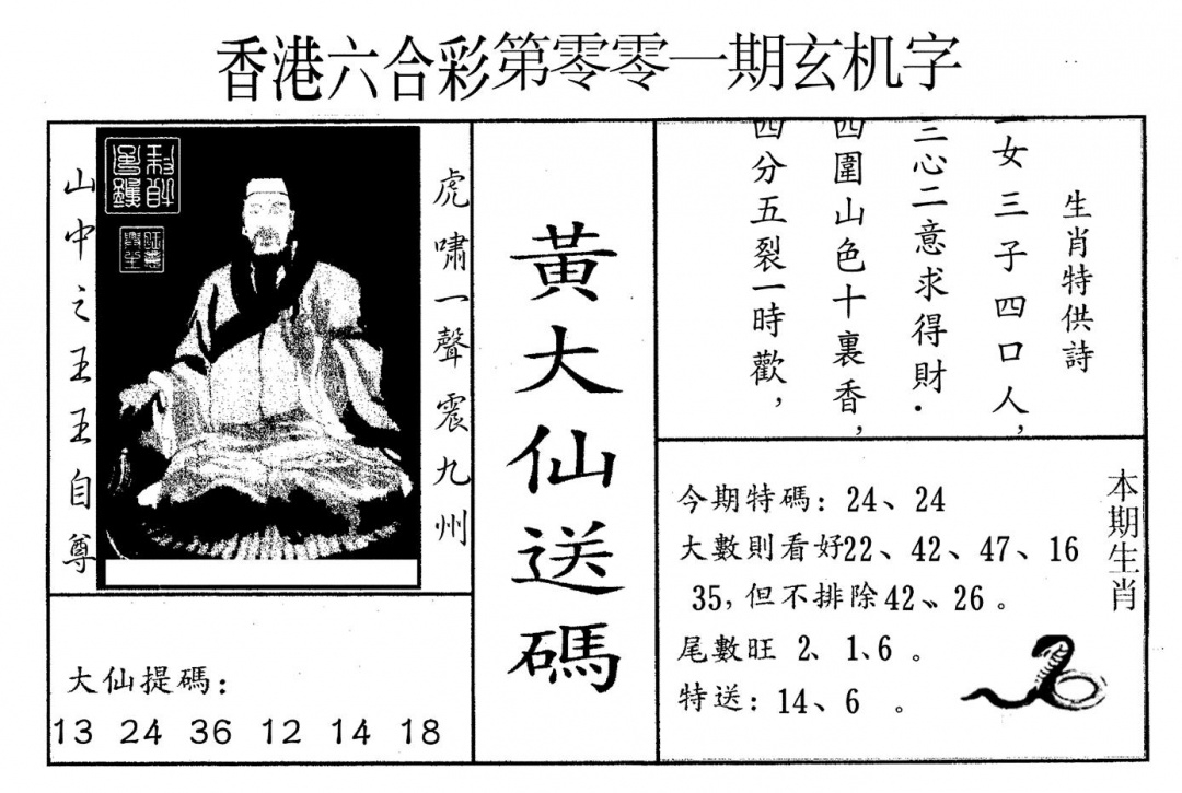 黄大仙灵码A